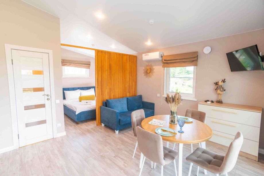 Общая площадь каждого дома — 90м². С уютной обстановкой и дизайнерским ремонтом. Дома рассчитаны на 6 человек, имеют 3 спальни и гостиную.